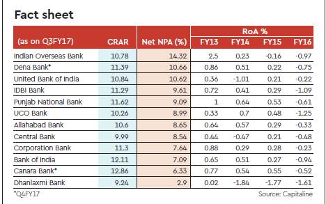 That apart, lenders would also be stopped from expanding their branch networks. It would need to maintain higher provisions and management compensation and directors’ fees would be capped. The RoA numbers have assumed greater significance since the government infuses capital into public sector banks based on their weighted average of RoA for the previous three years. In the current financial year, the government plans to infuse Rs 10,000 crore into PSBs.
