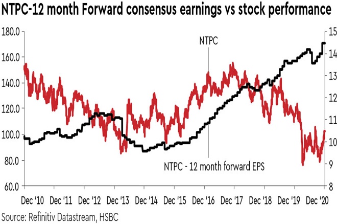 NTPC stands out as one of the six worst-performing stocks on the Nifty 50 Index on YTD/1Y/3Y basis. The stock is down 14% YTD, trading at 0.8x FY22e PB (closest to its lowest range in ten years), 7x one year forward PE and 5.5% dividend yield. This is despite feeling minimal COVID-19 impact (we expect FY21 reported earnings growth of 23% y-o-y and 20% earnings CAGR over FY20-23e). We believe investor concerns surrounding ESG and government ownership are some of the key reasons for the underperformance.