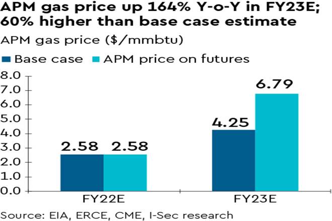 At latest futures, FY22-FY23e Brent is 5-4%, FY23e deepwater and APM gas prices are 40-60% and FY22e LPG price is 22% above our estimates. Net impact of this, upside to NRL’s FY22e GRM and downside to ONGC’s FY22-FY23e gas sales, is upside to FY22-FY23e EPS of ONGC of 8-27%, OIL of 14-17% and GAIL of 27-6%.