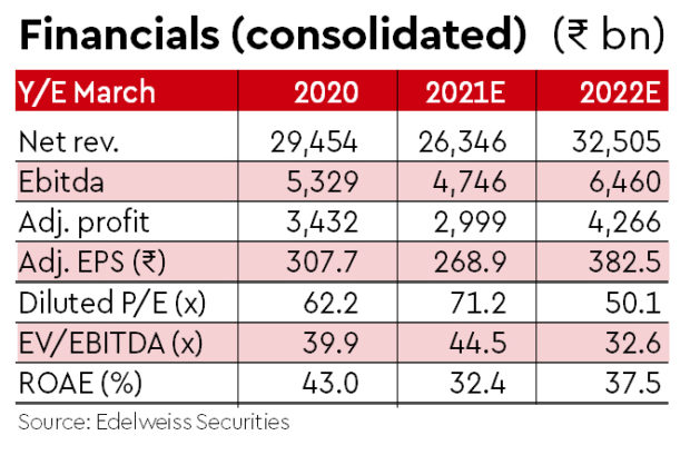 On balance, we expect Page to clock revenue growth in line with the industry (breaking away from past) despite the initial athleisure kicker and build in 10% CAGR over FY20–28 (FY09-19: 27%). We value the company using a three-stage DCF, which yields TP of Rs 19,195. Valuations have primarily been a function of its growth. At CMP, the stock is trading at 50x FY22e EPS.