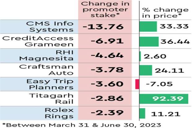 According to Capitaline, out of 1,182 companies for which data is available, 138 saw promoters reducing their holdings during the April-June quarter.