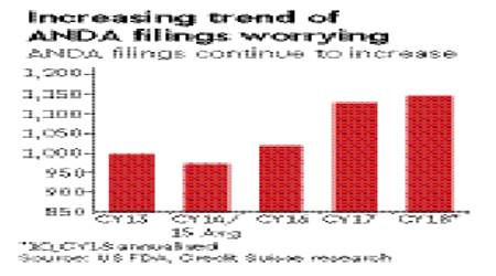 ANDA filings in the US continue to increase and worry us. This trend goes against generic companies’ commentary that margins in the US have already come down to an extent that players have started exiting. In our view, portfolio margins in the US are still very healthy and continue to attract new players, and we expect price erosion to accelerate from here rather than decelerate.