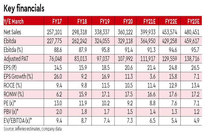 Q2FY21 profits beat was due to higher other income. Consolidated capex is down 14% y-o-y and capitalisation is up 154% y-o-y as Rs 95 bn of the Rs 195-bn Raigarh Pugalur project was commissioned. Higher surcharge income drove the 67% y-o-y other income rise. We raise our FY21e-22e EPS by 2-5% to account for the same. The stock has de-rated in the last 3-5 years on a weak growth outlook and 6% dividend yield limits absolute downside. Maintain Hold.