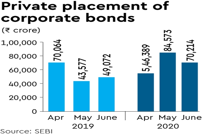 Private placement of corporate bonds continued to see traction in June, with issuances lingering over the Rs 70,000-crore mark during the month, data put out by the Securities and Exchange Board of India (Sebi) revealed. As a result, bond issuances during the first quarter of FY2021 stood at Rs 2.09 lakh crore, having risen over 28% compared to the same period last year.