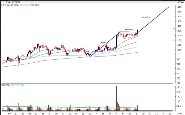 Lupin share price surged as high as 4.7 per cent to Rs 1,266.35 apiece in intraday deals on BSE, in an otherwise weak market. This Rakesh Jhunjhunwala-owned drug stock has surpassed its previous high of Rs 1,246.30 apiece hit on May 11, 2021. Lupin stock price hit a 52-week low of Rs 828.65 apiece last year in July, since then stock has soared 53 per cent. Technical charts signal that this pharma company may rise up to 20 per cent more in the near term. “Lupin is in poll-flag formation which indicates a strong upside move,” said an analyst. “The breakout is seen near 1,226 levels and poll height is 160 points. So, it is expected to test 1,380 levels soon. One should keep stop loss below Rs 1,200,” Vishal Wagh, Head of Research, Bonanza Portfolio Ltd, told Financial Express Online.