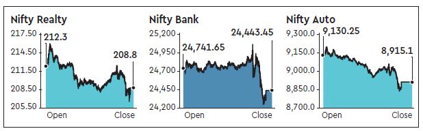 However, analysts said the RBI’s status quo stance has come against the market expectations of a 25 bps rate hike. The Nifty PSU Bank index closed 4.38% lower at 2,656 points, while the Nifty Realty index ended 2.73% down at 208.80 points. Nifty Auto closed 3.17% lower at 8,915.10 points. All the three sectoral indices recorded their respective 52-week lows on Friday.