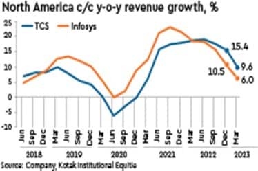 The banking crisis in US regional banks and European banks in March 2023 has induced greater caution and could impact the June quarter. Kotak expects FY24 to remain weak for IT firms.
