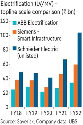 ABB’s ability to win more mandates from its parent (such as, the recent low voltage products), deepening tier-2/3 market penetration, and significant scope to expand its addressable market in low voltage electrification add to our confidence that earnings can grow at a high double-digit trajectory.