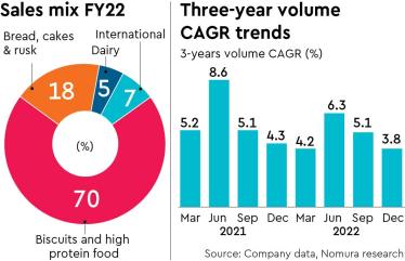 New product launches scaling up well: Recent new launches such as Biscafe, Golmaal, NC Seeds & Herbs and Marble cake grew strongly in Q3. The company also relaunched certain products such as Pure Magic Chocolush & Rusk with improved recipes. The company expanded the footprint of certain adjacent categories (e.g., croissant and cakes) and also forayed into certain newer adjacencies during the quarter.