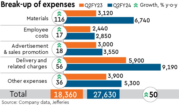 Highlights of the strong beat include an impressive 47% y-o-y growth in overall gross merchandise value (GMV), reaching Rs 114 billion, which is 6% ahead of expectations. Adjusted Ebitda and PAT saw sharp improvements, driven by Blinkit turning contribution positive. However, food delivery margins remained relatively stable, primarily due to factors such as Gold and salary increments, although they still exceeded initial estimates.