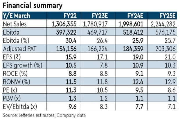 The mgmtvhas mentioned that 24 GW of ultra mega RE park is under various stages and includes 10 GW of Rajasthan. Interest costs are a key differentiating factor that could help NTPC achieve the same equity IRR (internal rate of return) as its competitors, even if it bids at tariffs that are 10-15% lower. We highlighted in ‘India Power: Decade of growth ahead’, dated 18 July 2022, that NTPC is an underpriced beneficiary of our estimated 82% rise in India’s RE capacity by FY26E-27E and 2.8x by FY30E. We believe re-rating drivers of operational efficiency improvements, capacity additions and right ESG noises are in place for NTPC. Risks—coal supply shortage impacting PAF and earnings; and meaningful delay in RE execution.