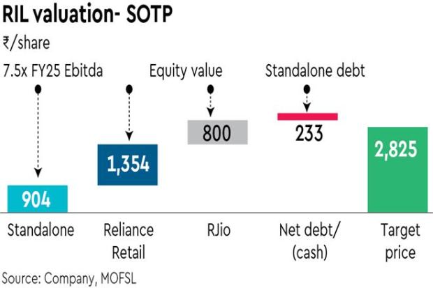 JFS owns a 6.1% stake in RIL, which is valued at Rs 1.1 trillion. This stake represents a significant portion (90%) of JFS’s net worth. Excluding the investments in RIL shares, JFS’s net worth would be Rs 100 billion. Assuming that the investments in RIL shares account for around 90% of JFS’s net worth, the book value per share of JFS would be Rs 190. It is important to note that our current SOTP-based TP of Rs 2,825 for RIL does not include the value of JFS. Therefore, this event could potentially unlock additional value for RIL.