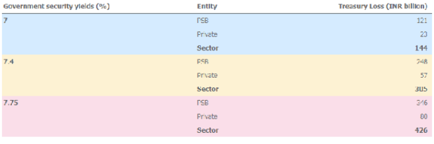 Due to higher bond yields, the worst hit would be mid-sized banks. The treasury loss will also affect the “vigour” gained after the announcement of the bank recapitalisation, Ind-Ra said.