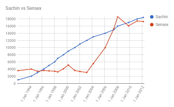 What started out as a catch up game for Tendulkar, came around with Sachin at the top of it. At the end, Sachin came out victorious, but no surprises there. If only we had a Sachindex, mimicking the cumulative runs scored by the master, we would be better off!