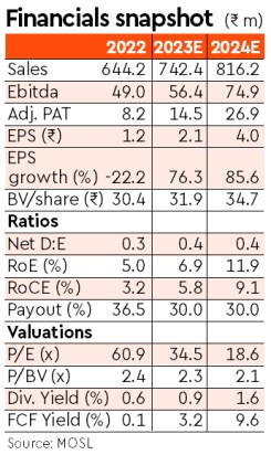 RoCE target of 40% hinged on asset utilisation, operating leverage and turnaround of underperforming plants: It has capacities in place to take production back to pre-Covid levels and service its strong order book at SMRPBV (Samvardhana Motherson Automotive Systems Group BV). Hence, if production normalises the company will see twin benefits of operating leverage and increase in asset turnover. Further, there is scope of a turnaround of the underperforming plants that can also contribute to RoCE improvement notably. It currently has 11 plants, which are operating at losses.