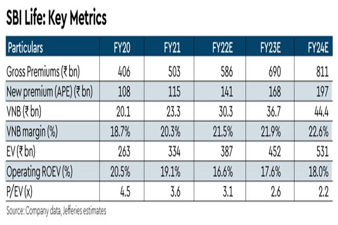 Buy stays: We maintain Buy and raise PT to Rs 1,380 (from Rs 1,240) driven by better growth (FY22 APE growth est. at 23%) and margin assumption (lifting VNB est. by 7%-9%) and higher multiple of 2.9x on June-23 EV. We build in VNB CAGR of 24% over FY21-24e. Stock trades at 2.6x FY23e EV for an op RoEV of 17%.