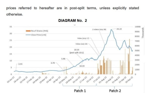 Following this, the regulator conducted an examination during April-September 2022 and found a spurt in the price and volume of scrip of Sadhna between April and mid-July 2022. During the second half of July 2022, false and misleading videos about Sadhna were uploaded on two YouTube channels — “The Advisor” and “Moneywise”.