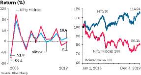 The Nifty Midcap and SmallCap indices, which usually outperform the benchmarks, have fared poorly for second year in a row as investors remained concerned over slowing economic growth and subdued growth in corporate earnings.