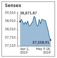 On Thursday, the Sensex slid another 230.22 points, or 0.61%, to close at 37,558.91 as investors remained cautious ahead of trade talks between the US and China this week. The fall was led by Reliance Industries.