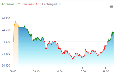 Adani Ports, ITC, L&T, Tata Consumers, and Ultratech Cements were the top gainers as Nirmala stood up to present the budget for fiscal year 2025.