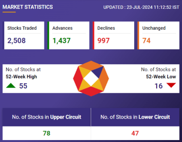 Stock Market Budget 2024 Highlights: Markets closed on a negative note as the government increased short-term capital tax gains and long-term capital gains tax. However, to boost foreign investment the government announced that there’ll be no angel tax across any asset class. The Nifty 50 closed 33 points or 0.13% lower at 24,476.55, while the BSE Sensex closed 62 points or 0.08% lower at 80,440. The long-term capital gains tax was revised to 12.5% from 10%. The government revised the Security Transaction Tax to 0.02% from 0.01% for F&O. Bank Nifty closed 502 points or 0.96% lower at 51,778, while the Nifty Midcap 100 fell 339 points or 0.60% to settle at 56,285.25.