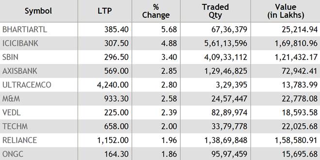 Shares of India's telecom giant Bharti Airtel rose more than 3% in the afternoon session on Monday and were among the top three gainers among Sensex scrips. The stock of Bharti Airtel advanced 3.25% to a day's high of Rs 376.3 from a share price level of Rs 364.45 on BSE today.