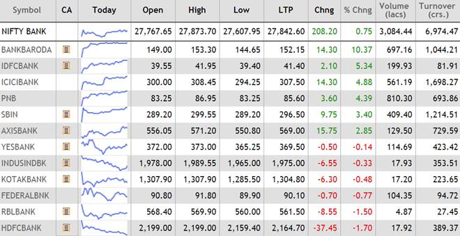 The benchmark Nifty 50 index rose more than 1% on Monday led by the shares of GIC, Bank of Baroda, PNB, Idea, SAIL and ICICI Prudential. Nifty Next 50 rose 1.06% to 29,568.45.