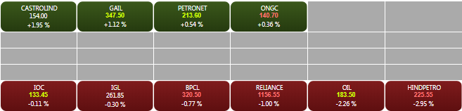 Shares of oil marketing companies like Hindustan Petroleum, OIL, Reliance Industries, BPCL, IGL and IOC traded lower on Monday after oil soared more than 5% as U.S. and Chinese leaders brokered a truce in their trade conflict.
