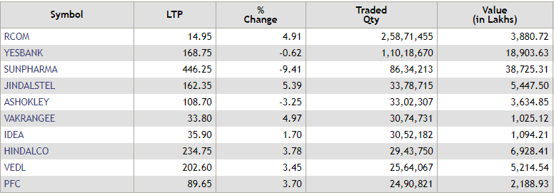 The NSE Nifty took cues from the global markets and opened in the positive territory on Monday. RCom was the most traded stock by volume on the NSE during the first 15 minutes of trade today. Check out all other stocks here: