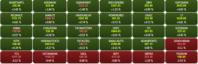 The BSE Sensex jumped over 200 points to a high of 35,184.93 points in opening trade today. The NSE Nifty 50 opened firmly above the 10,550-mark. Bharti Airtel, Axis Bank, Asian Paints, IndusInd Bank, SBI, HDFC Bank were among the top gainers in morning trade today.
