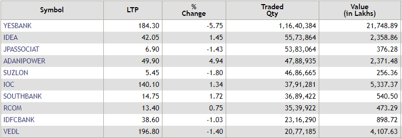 The NSE Nifty opened firmly above the 10,550-mark today tracking positive Asian markets and a higher opening of the rupee against the US dollar. Yes Bank was the most traded stock by volume in the first 15 minutes of trading today. Check out the other stocks here: