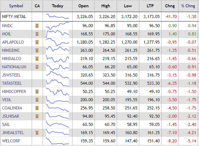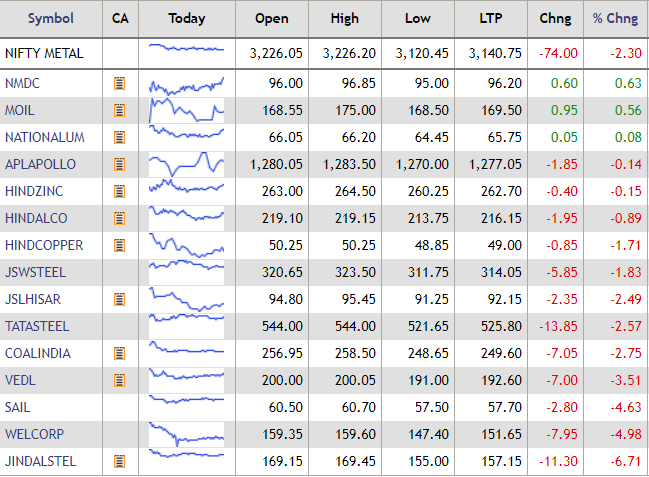 The Nifty metal index traded with losses today, with shares of Jindal Steel & Power slumping nearly 7% on the index. Check all metal stocks here: