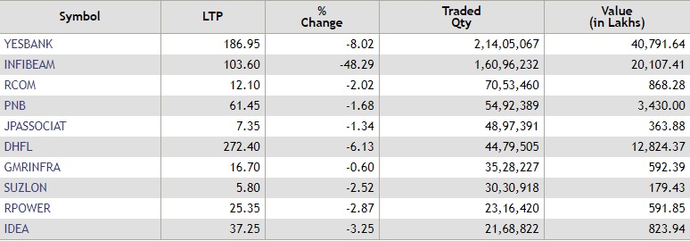 Yes Bank was the most traded stock by volume in the 15 minutes of trade on Friday, followed by Infibeam, RCom, PNB, JP Associates and DHFL.