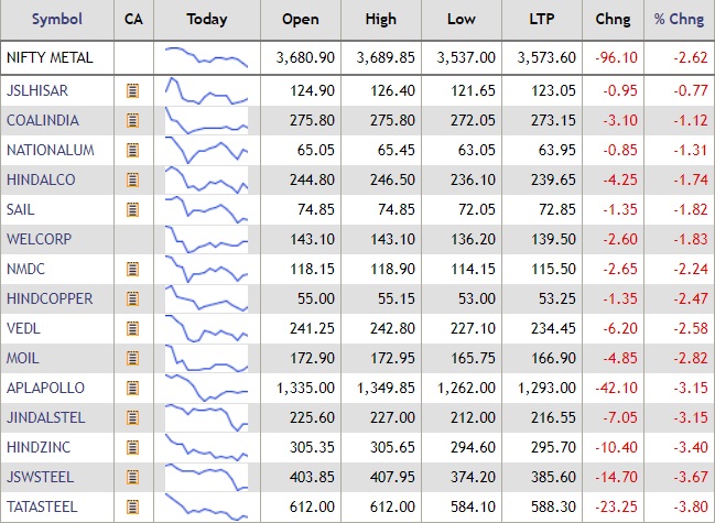 Metal stocks fell in the morning trade deals on Friday with shares of Tata Steel and JSW Steel falling upto 4%.