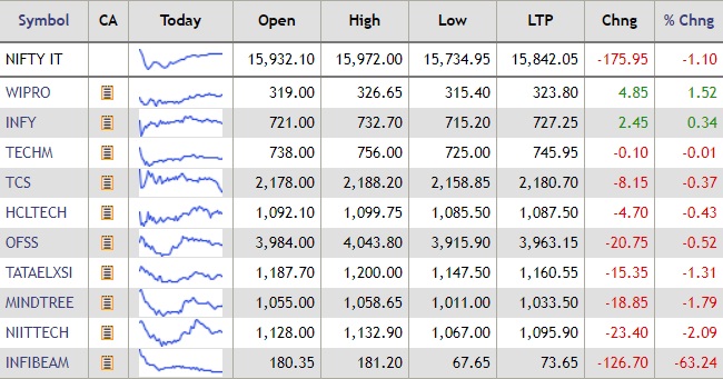IT stocks were trading weak during mid-afternoon trade deals on Friday, with Infibeam Avenues shares plunging 66% on the NSE.