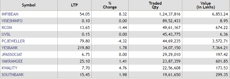 The NSE Nifty, which opened below the 10,600-mark, traded lower by 22.65 points or 0.21% at 10,575.75 points minutes later. During the first 15 minutes of trade, Infibeam Avenues emerged as the most traded stock on the NSE by volume. Check out the other stocks here: