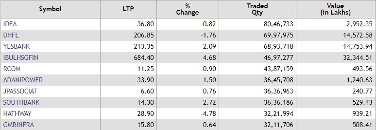 Vodafone Idea shares were the most traded stock by volume on the NSE in the first 15 minutes of trade on Monday. Idea shares were followed by DHFL, Yes Bank, Indiabulls Housing Finance, RCom and Adani Power.