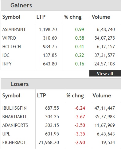 The NSE Nifty ended the October series down by nearly 1% at 10,124.90 points. Check out the top five gainers and losers today: