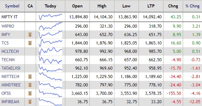 The Nifty IT index was the only index trading in the green amid a carnage in the Indian equity markets on Thursday. Wipro shares gained over 3% after the company announced its Q2 earnings on Wednesday.