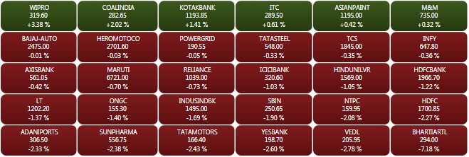 It was yet another day of losses on the bourses as investors once again took to selling Indian equities. Despite a small recovery yesterday, benchmark indices were unable to trade with strength and succumbed to selling pressure. Negative global stocks also impacted domestic sentiment. Both the benchmark Sensex and the Nifty finally closed the day with losses of nearly 1%. Most Asian stocks declined as concerns mount that corporate profits and economic growth are peaking amid rising borrowing costs. US stocks dropped yesterday, 24 October 2018 as mixed corporate earnings and weak housing data fueled anxiety that rising prices will crimp economic growth. All the sectoral indices on the National Stock Exchange closed in the red.