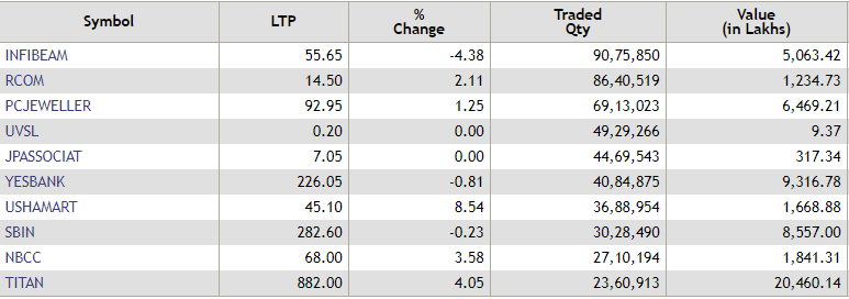 The NSE Nifty 50, which opened above the 10,600-mark on Monday, traded 40.70 points or 0.38% higher at 10,625.90 points around 9.30 am. Check out the most traded stocks by volume on the NSE in the first 15 minutes of trade today.
