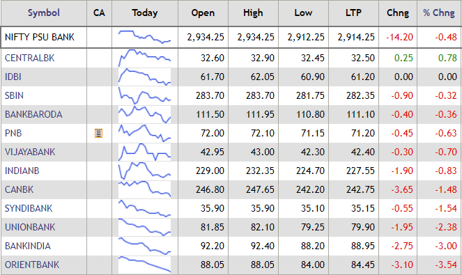 The NIFTY PSU Bank index traded lower by 0.48% in early morning trade on  Monday. Barring Central Bank of India, all PSU Banks traded in the red. SBI shares were down 0.32%.