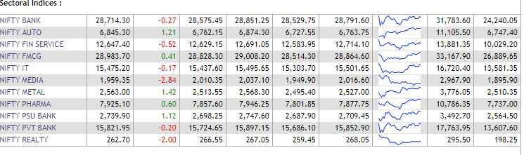 Nifty media and Nifty Realty are trading the lowest, while Nifty Auto and Nifty bank are trading higher.