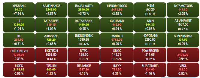 Share Market Highlights: Sensex ends 52 points down, Nifty below 11,300; Yes Bank, Bajaj Finance top gainers
