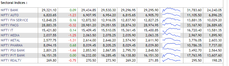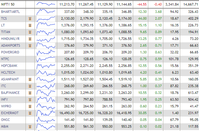 The Indian equity benchmark indices continued their downtrend despite stable global cues. The Nifty index opened on a firm note, however, the gains soon fizzled out as the index slipped to a low of 11,073 before closing 0.9% lower at 11,085 (down 104 points). Notably, Bank Nifty lost around 500 points and closed lower at 28,790 levels. The broader market indices ‘BSE Midcap and BSE Smallcap’ too ended lower by 1.6% and 2.1%, respectively. Once again IT ended in positive (up 0.7%), while all other sectoral indices witnessed heavy selling pressure with Auto, Metals, Oil & Gas and Banking leading the pack of losers.