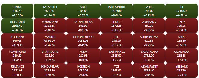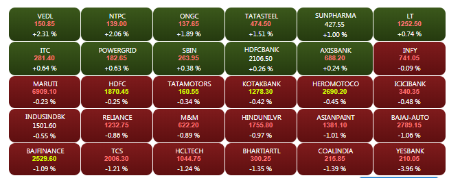 The stock markets- Sensex and Nifty opened mildly higher, but soon turned choppy, tracking mixed global cues. The Sensex is down 42 points to 35,766.65, while the Nifty is trading above the 10,750-mark. Yes Bank shares are trading 5% lower at Rs 208 on NSE, after the Reserve Bank of India warned of regulatory action for disclosure of nil divergence report in violation of the confidentiality clause. HCL Tech shares too are trading 2% lower. A look at LIVE Sensex heatmap.
