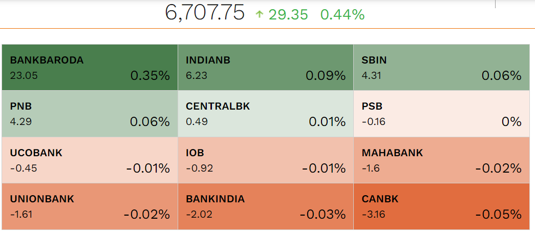 Nifty PSU Bank outperforms overall markets, rising 0.44%. The index was pulled up by Bank of Baroda, IndusInd Bank, and SBI on October 04.