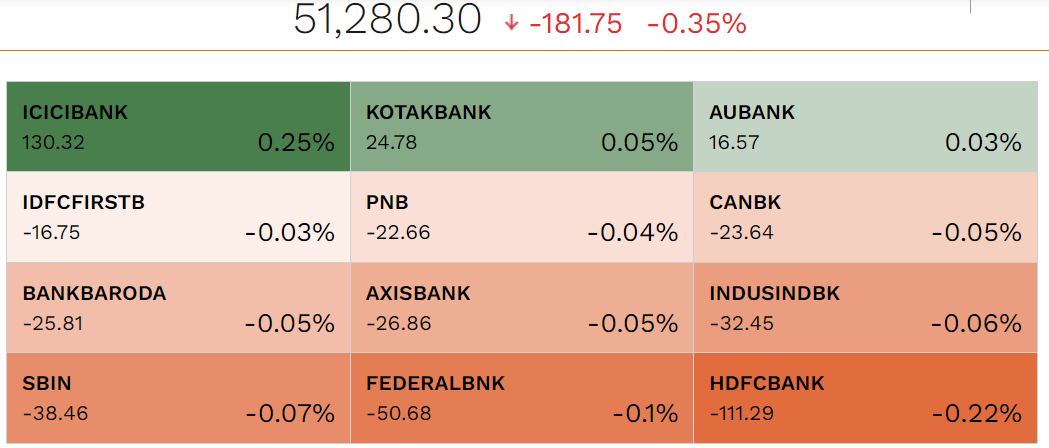 HDFC Bank, Federal Bank, SBI, IndusInd Bank, and Axis Bank saw major cuts in the banking index. They dragged the Nifty Bank on October 07.