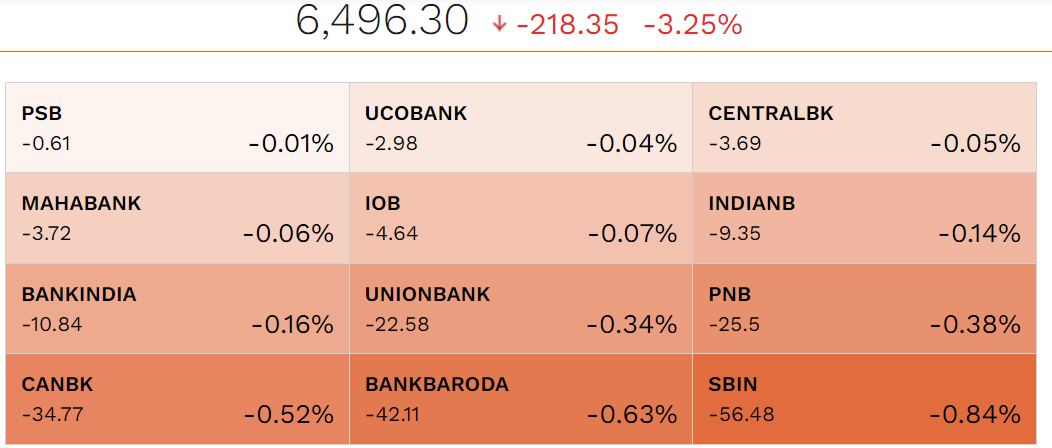 SBI, Bank of Baroda, Canara Bank, Punjab National Bank, and Union Bank were the major contributors to the fall of Nifty PSU Bank on October 07.