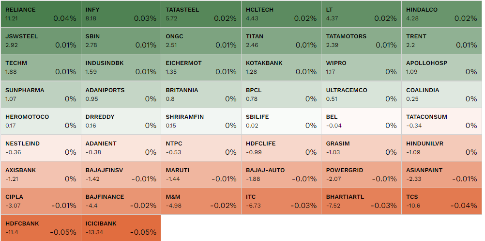 ICICI Bank, HDFC Bank, TCS, Bharti Airtel, and ITC were the top contributors to the Nifty 50 on October 11.